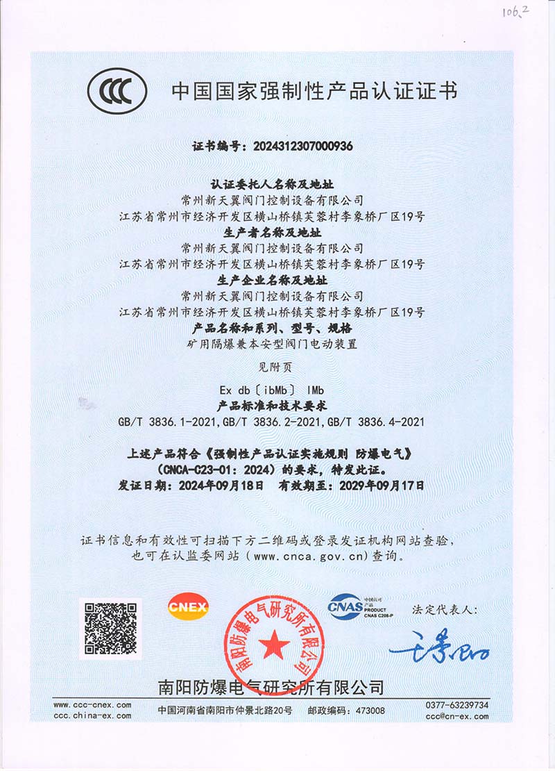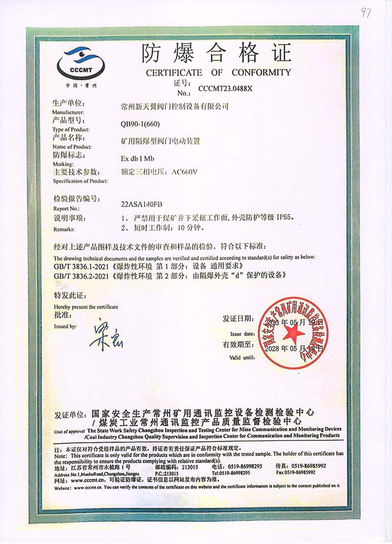 隔爆型DZB 中國國家強制性產品認證證書108.2